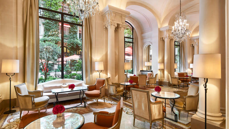 I love a hotel with a good courtyard, and Le Bristol does not disappoint. Their Le Jardin Français (French Garden) features a quiet colonnade flanked by orange trees, dripping wisterias and rose blossoms. Grab a table under one of the white umbrellas and order yourself a French 75 cocktail (this is France, after all). Some call the garden the hotel’s green heart, which makes perfect sense as you’ll likely fall in love with this oasis in the midst of Paris’ city center. While Le Bristol is a bit further from Paris’ main attractions, it is a few minutes walking from the Miromesnil metro stop, making it easy to zip around the City of Light. Notably, Le Bristol has an indoor swimming pool should you want to rest your aching feet after a day spent roaming the French capital.
